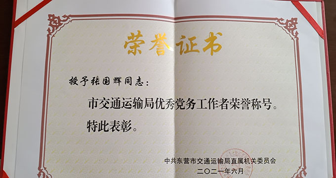 張國輝榮獲“市交通運輸局優(yōu)秀黨務工作者”
